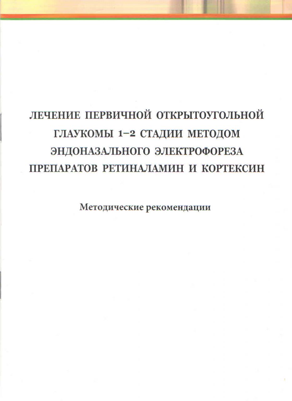 | Лечение первичной открытоугольной глаукомы 1-2 стадии методом эндоназального электрофореза препарато Методическое пособие.