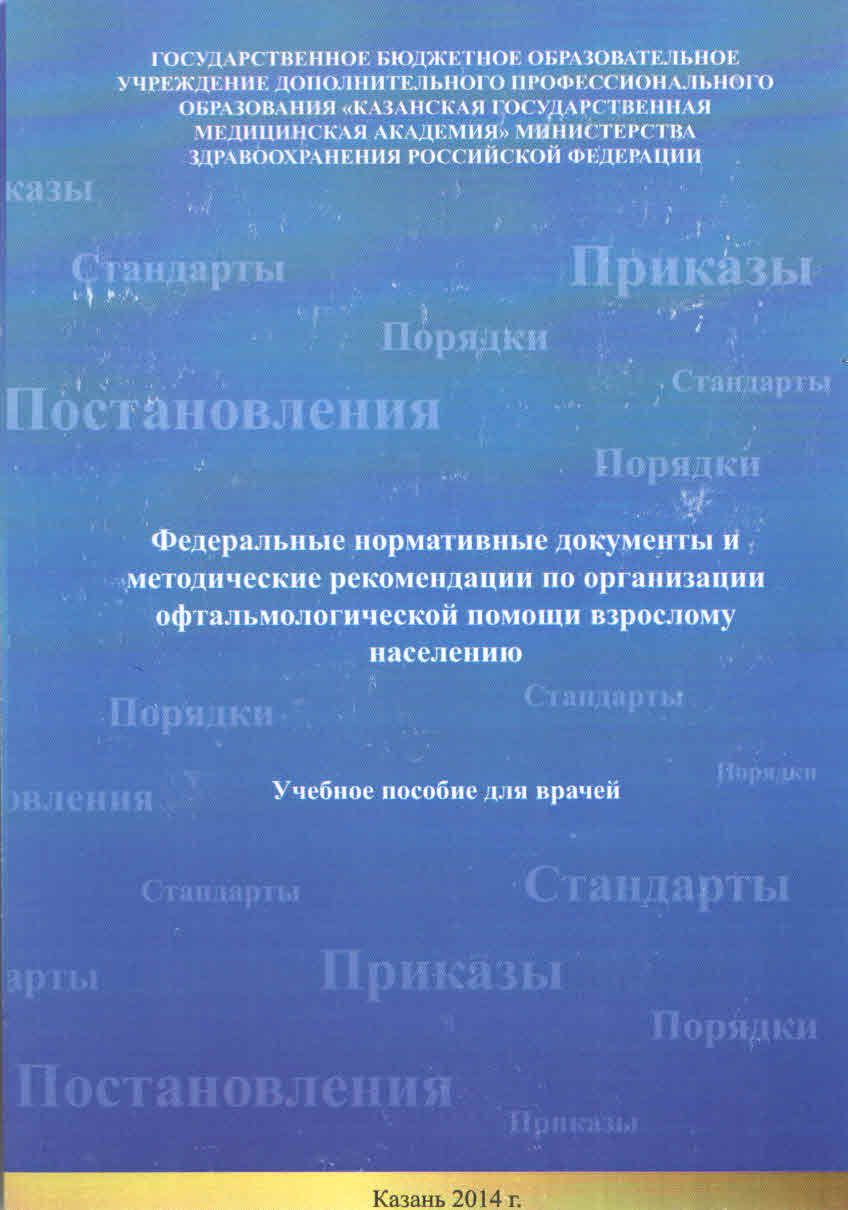 | Федеральные нормативные документы и методические рекомендации по организации офтальмологической помо Учебное пособие для врачей.